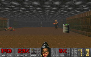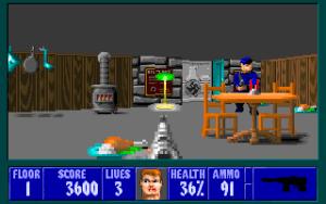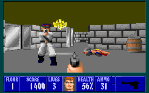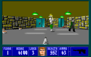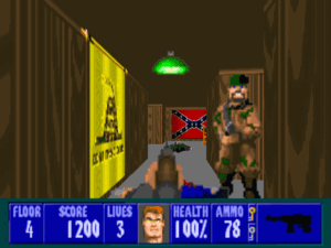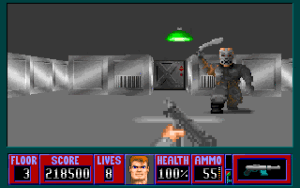 Foxenstein is an upcoming TC by Alex. The title comes from his nickname 'The Silver Fox'. Source code changes include four keys, destructable columns and barrels, a few new enemies, seven weapons, shading and textured flats. The last two features are optional, because they make it difficult to play on slow machines and/or DosBox.