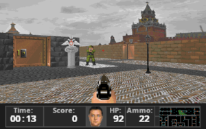 Kary has released ‘Kremlin 3D’, an ambitious mod taking on a quite current theme. The storyline goes, “Vladolf Putler, a psychopathic ruler of an evil empire, is disturbing the global peace again. He has to be stopped before more lives are lost. Are you up to the task?” Many new graphics and sounds are featured along with coding changes such as automap and parallax skies. 3 maps in all. For SDL. Updated April 12th.
