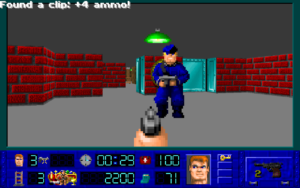 Linuxwolf has released ‘BIGWolf’. As the title indicates, BJ has now been shrunk down to size, enemies and objects likewise, creating a much more roomy atmosphere. In a sense, the gameplay is similar to that of the two Wolfenstein bonus maps in DOOM II. Graphics have been changed, and the set can be played with either Wolfenstein 3D or Spear of Destiny. For LZWolf.