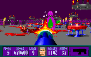 Here’s the latest from Zanu_AF. This time, Barney the Dinosaur gets another shot at fame in Wolf3D lore – probably for the first time since 1993! 5 levels are featured and the many features include new graphics and sounds, animated walls and objects and new music. For LZWolf.