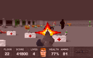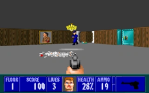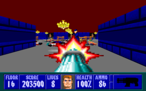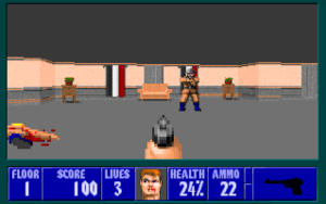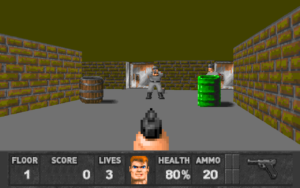 Orka has released ‘Des Mannes bester Freund’ which features plenty of dog-headed enemies! Tackling various canine antagonists in addition to other guards, the set features many new graphics and sounds along with new music. Gerolf contributed six maps, with Justy Zam and Thomas Weiling contributing one map each. 21 maps are featured, as the mod is based on Spear of Destiny. Many new changes are featured, including in-game messages being accompanied by images. For SDL.